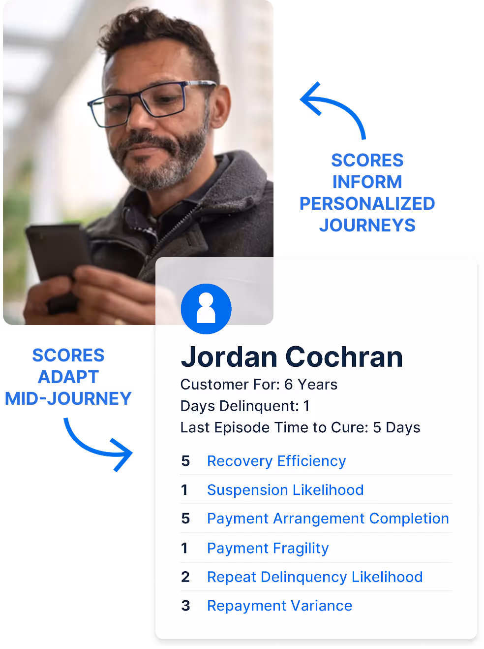 Symend Scores use AI to quantify a customer’s likelihood to repay, relapse, or respond — tracking +100 real-time behavioral and engagement signals to dynamically adjust & maximize results.
