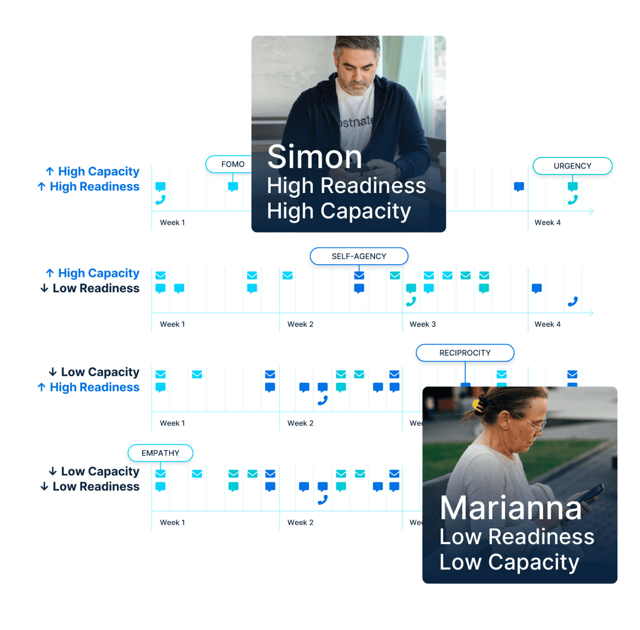 Symend assigns behavioral science-based psychological archetypes for optimal segmentation, ensuring the right message is sent the right way, at the right time — drastically improving engagement rates and customer experience.