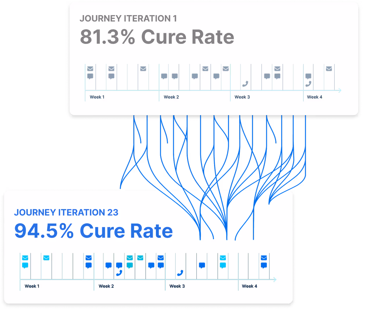 Symend integrates real-time learnings into every stage of active journeys, delivering compounding performance over time.