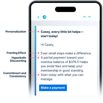 Our data-driven timing and behavioral cues encourages past-due members to respond promptly, improving first payment resolution.